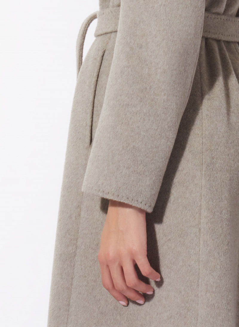 Belted Fitted Beige Wool Coat