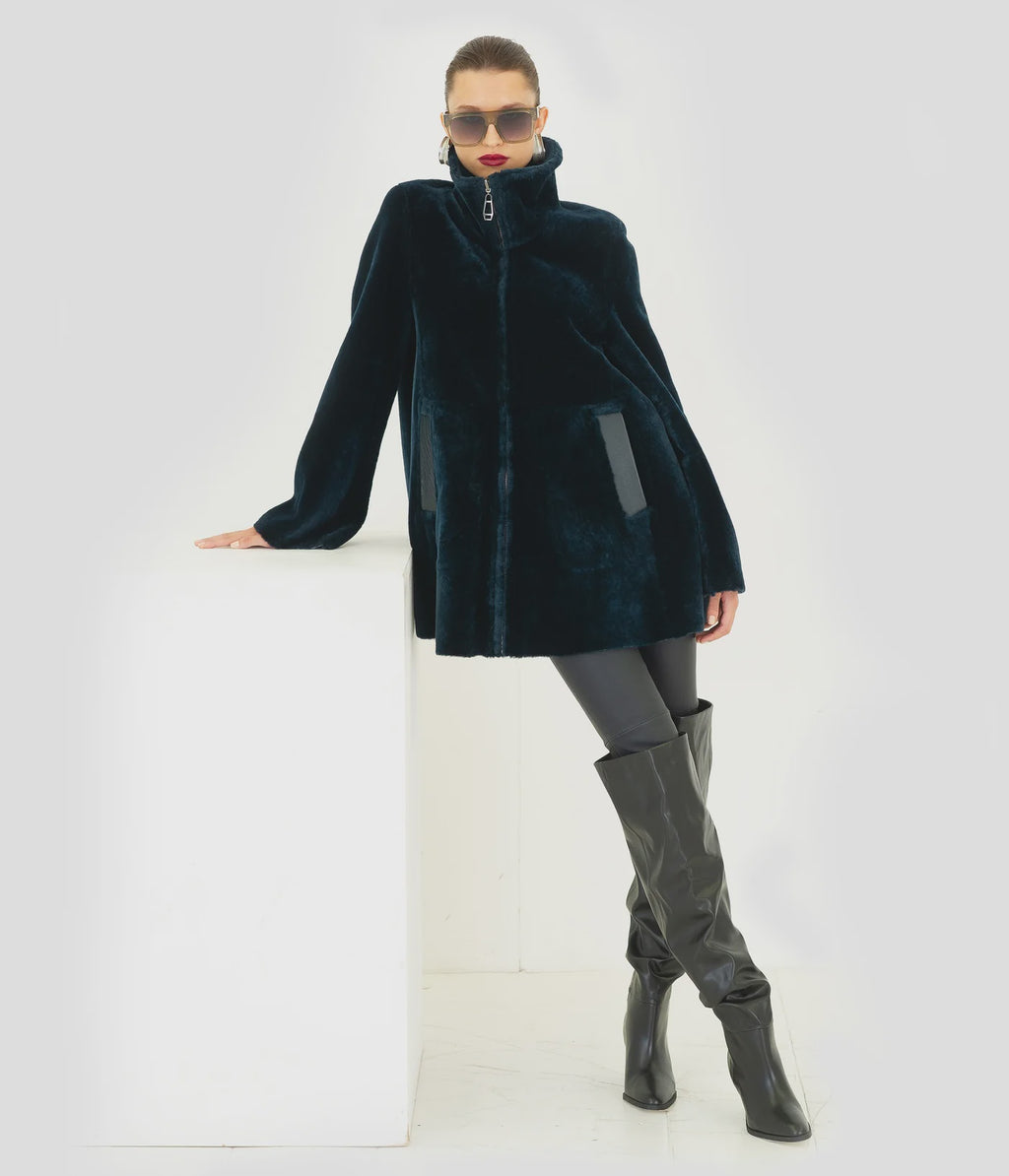 Experience unmatched warmth and luxury with the Reversible Shearling Short Zip Swing Coat. Made from 100% shearling, this coat features a sleek zip closure and a flattering swing silhouette that combines comfort with timeless elegance. Perfect for cold weather, it keeps you cozy while elevating your style effortlessly. Its reversible design adds versatility, making it a sophisticated addition to any wardrobe.