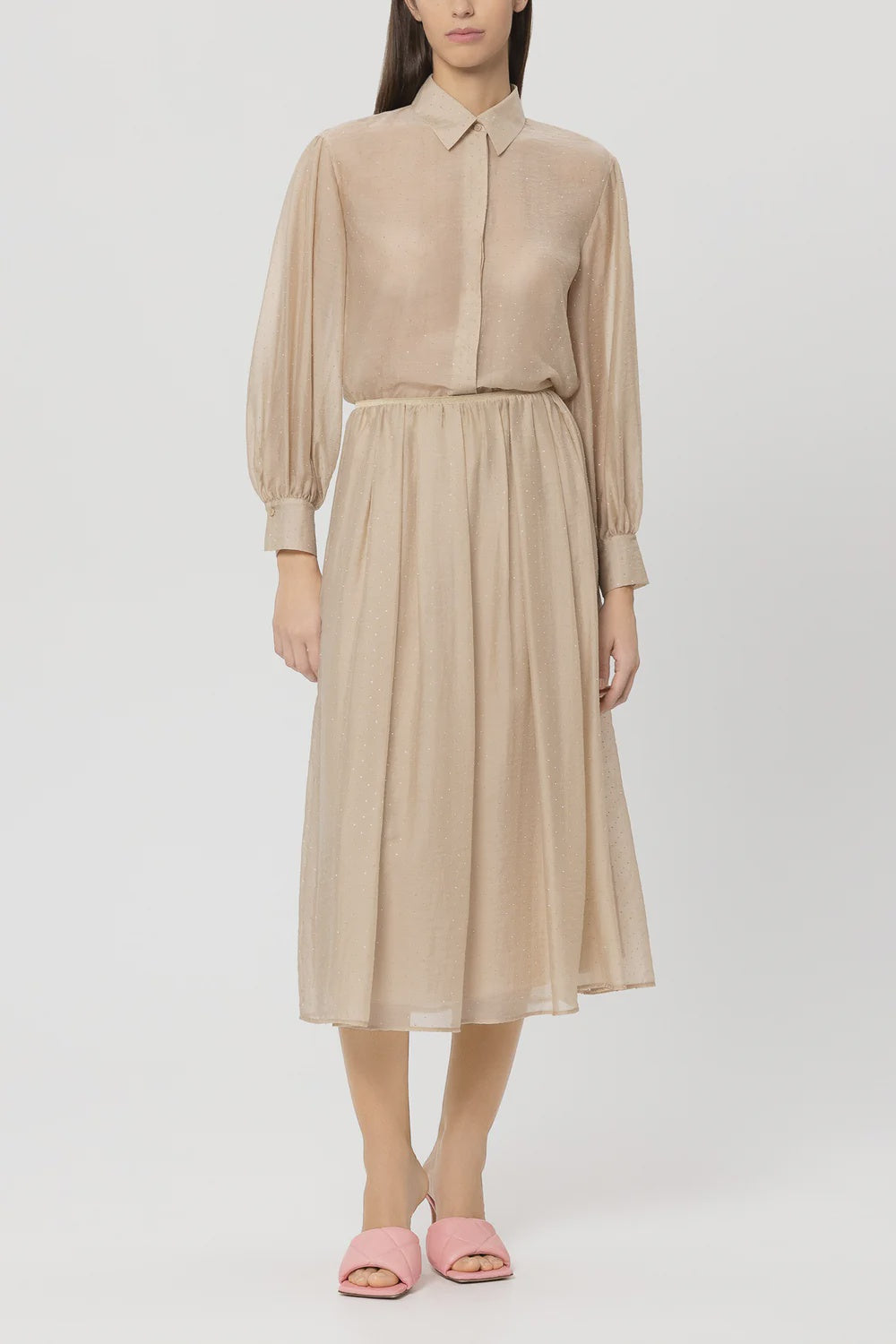 Long, wide skirt made from a semi-transparent lyocell blend with glittering stones and an opaque lining. The comfortable elasticated waistband ensures a secure fit.