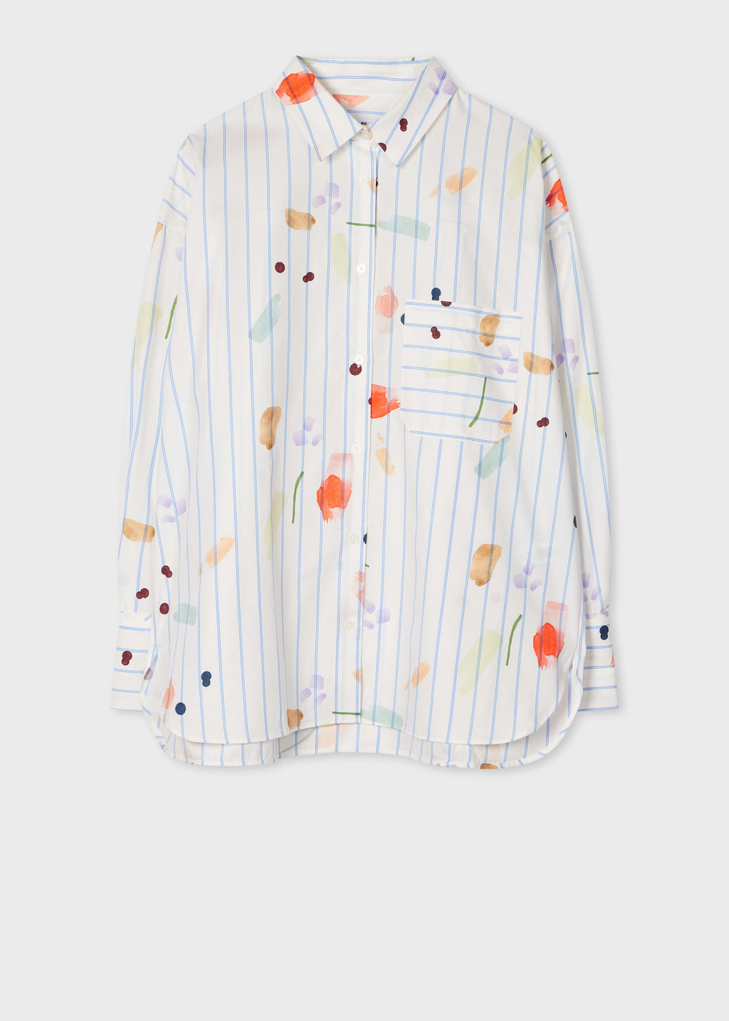 Made in Portugal from 100% soft cotton, this long-sleeve shirt features a stripe pattern throughout, with a colourful overlapping 'Brushstroke' pattern, adding a pop of colour to this classic silhouette. Perfect for elevating a smart-casual look, this shirt pairs well with jeans, or complementary tailoring.