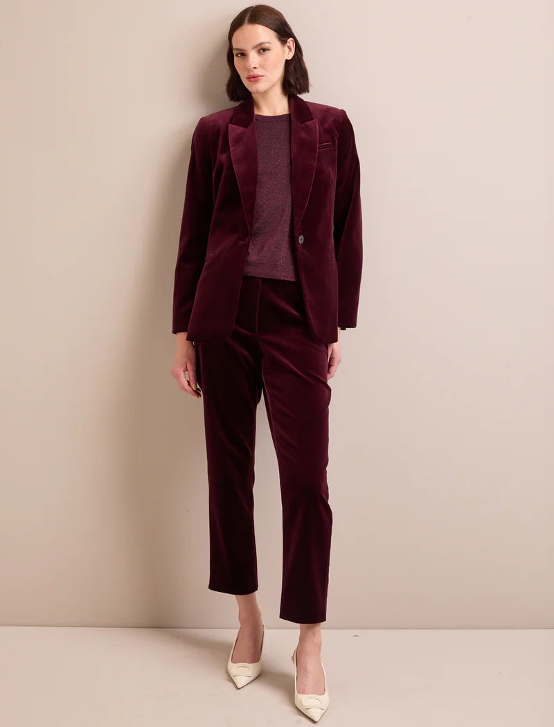 A velvet jacket is a true wardrobe hero, adding structure, texture, and polish to a multitude of looks. Beautifully tailored in a luxe cotton velvet, our best-selling Jamie blazer has lightly padded shoulders and contoured seams that create a softly defined shape. Co-ordinate with the Tatum or Taylor velvet trouser or layer over our lurex, silk, sequins or cashmere – the styling possibilities are endless.