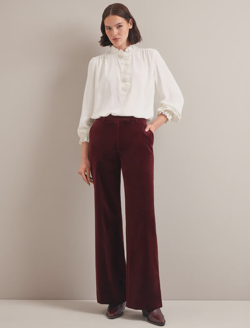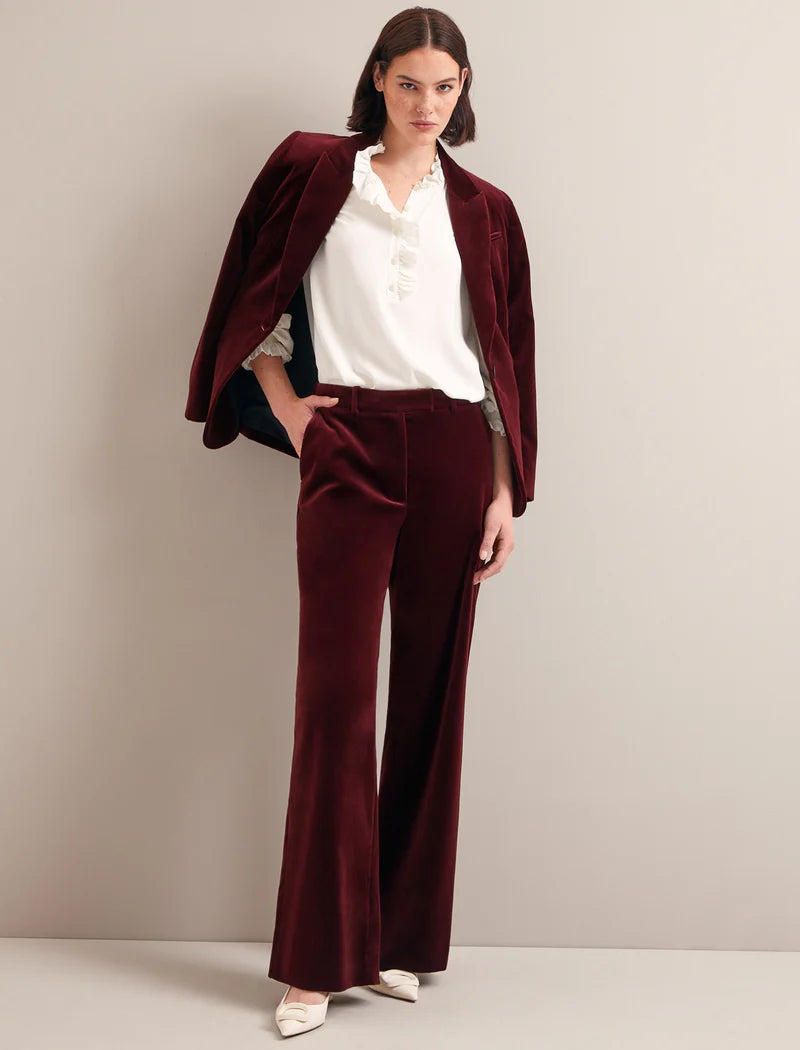 High-waisted and leg-lengthening, our wide-leg velvet Taylor trousers elevate any look and are amazingly versatile. Go for all-out glamour and co-ordinate with our Jamie jacket with nothing underneath, wear separately with a silk shirt and heel, or style more casually with a cashmere knit and trainer.