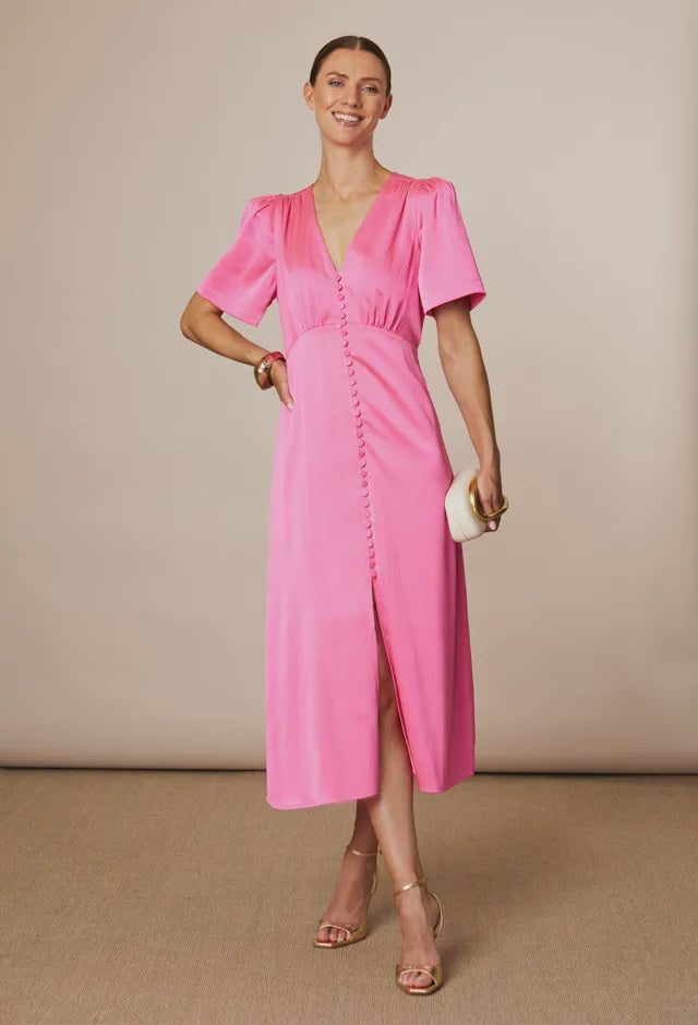 The Chrissie Dress is crafted from a fluid silky touch fabric that drapes beautifully for an elegant fit. Designed with a flattering v-neckline, gentle waist definition and a fluid skirt, it delivers relaxed elegance for both daytime and occasion wear.