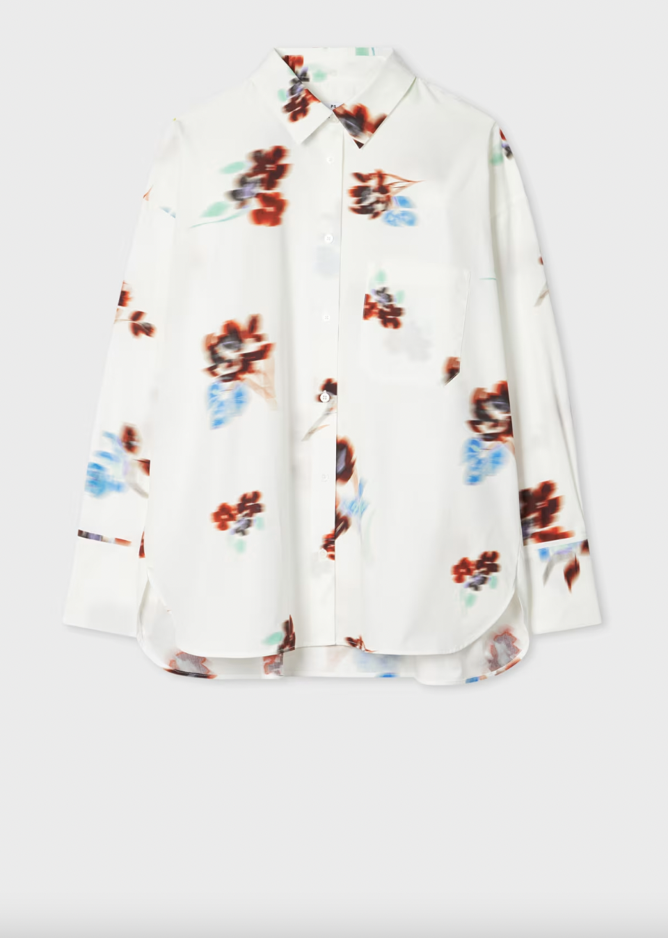 Made in Portugal from a soft, organically grown cotton, this long-sleeved shirt features the seasonal 'Hazy Floral' print throughout. The shirt is cut in a relaxed fit that provides a loose, comfortable silhouette, complemented with slightly exaggerated cuffs and a patch pocket to the chest.