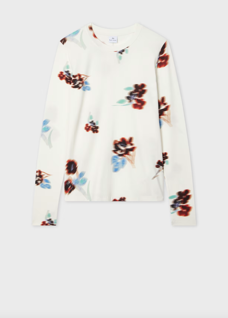 Made in Portugal from a soft cotton-blend, this white, long-sleeve t-shirt features a colourful 'Hazy Floral' pattern throughout. Ideal for elevating your casual wardrobe, this t-shirt pairs well with jeans or coloured, tailored-trousers.